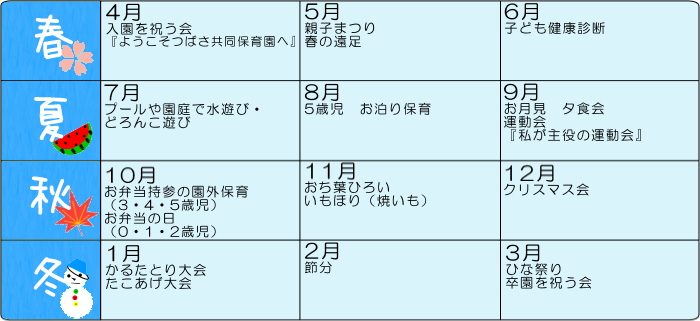 *0歳児から1歳児はその子の生活リズムに合わせて変更があります。